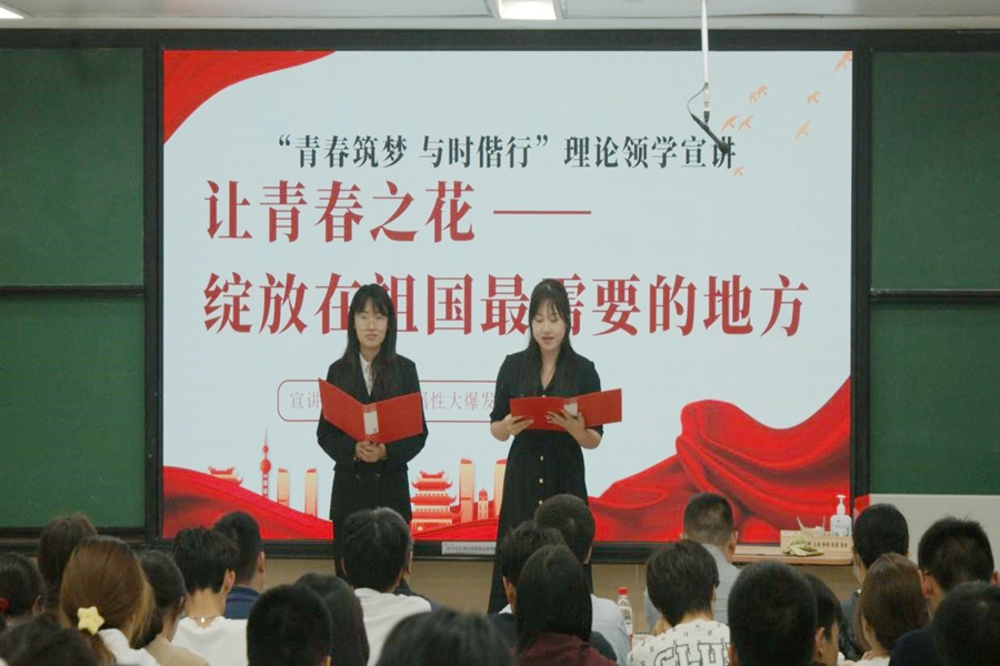 理论领学宣讲中,郝希文、白然竹密切配合,以“不啻微芒,造炬成阳”为题,道出她们对教育点燃希望之火的体会。钟证结合我国人才强国战略,讲述人才推动国家繁荣发展的基石作用。王淑敏结合“薛暮桥精神”,以“立足中国实际,做可堪民族大任的时代新人”为题,呼吁同学们担当使命责任,做有理想、敢担当、能吃苦、肯奋斗的新时代好青年。张忠炜结合党的二十大报告,分析教育、科技、人才“三位一体”的理论内涵和实践要求,并结合ky开元集团发展实际,发出为国家战略贡献青春力量的号召。