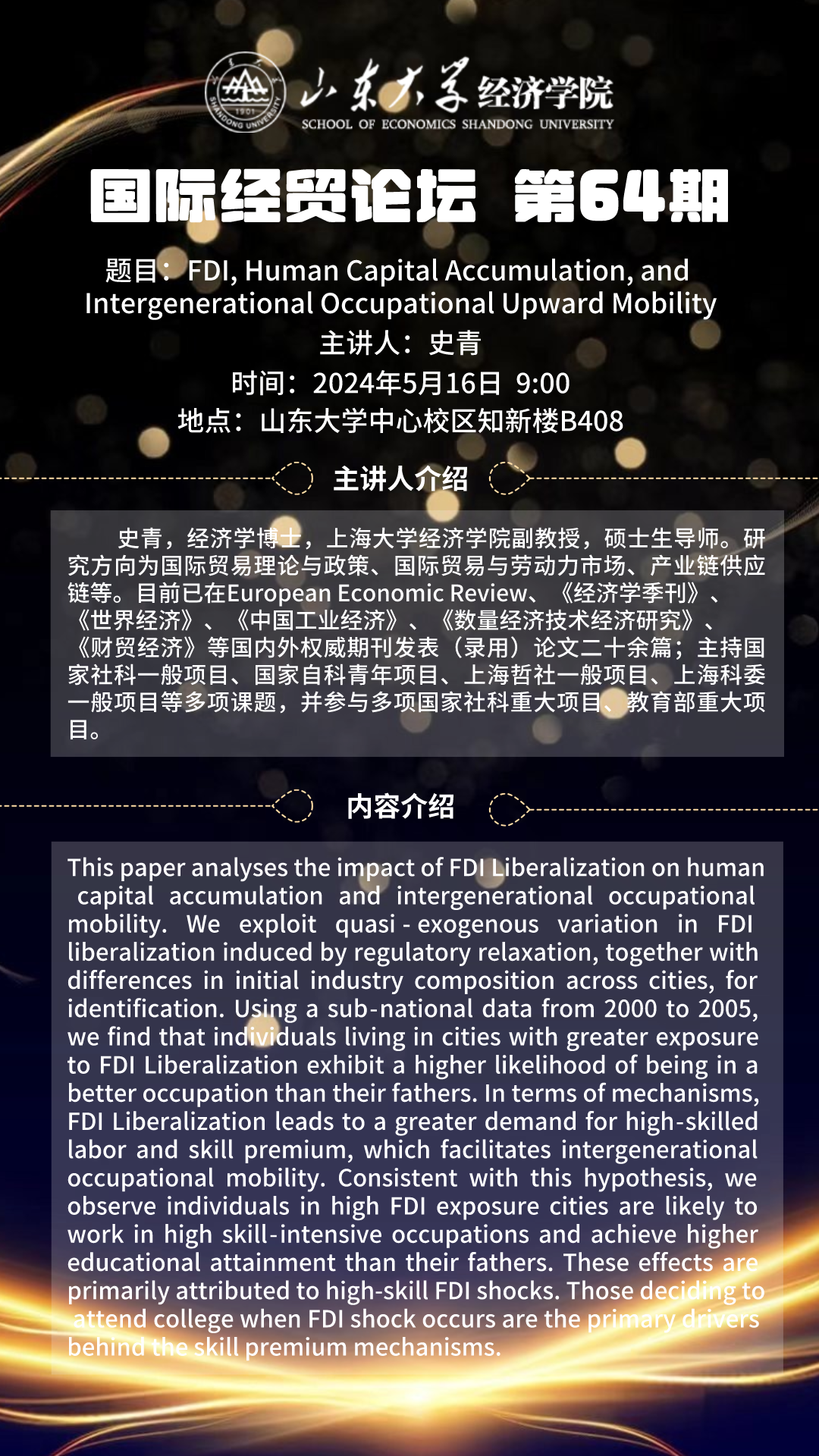 FDl, Human Capital Accumulation, and Intergenerational Occupational Upward Mobility(国际经贸论坛第64期)